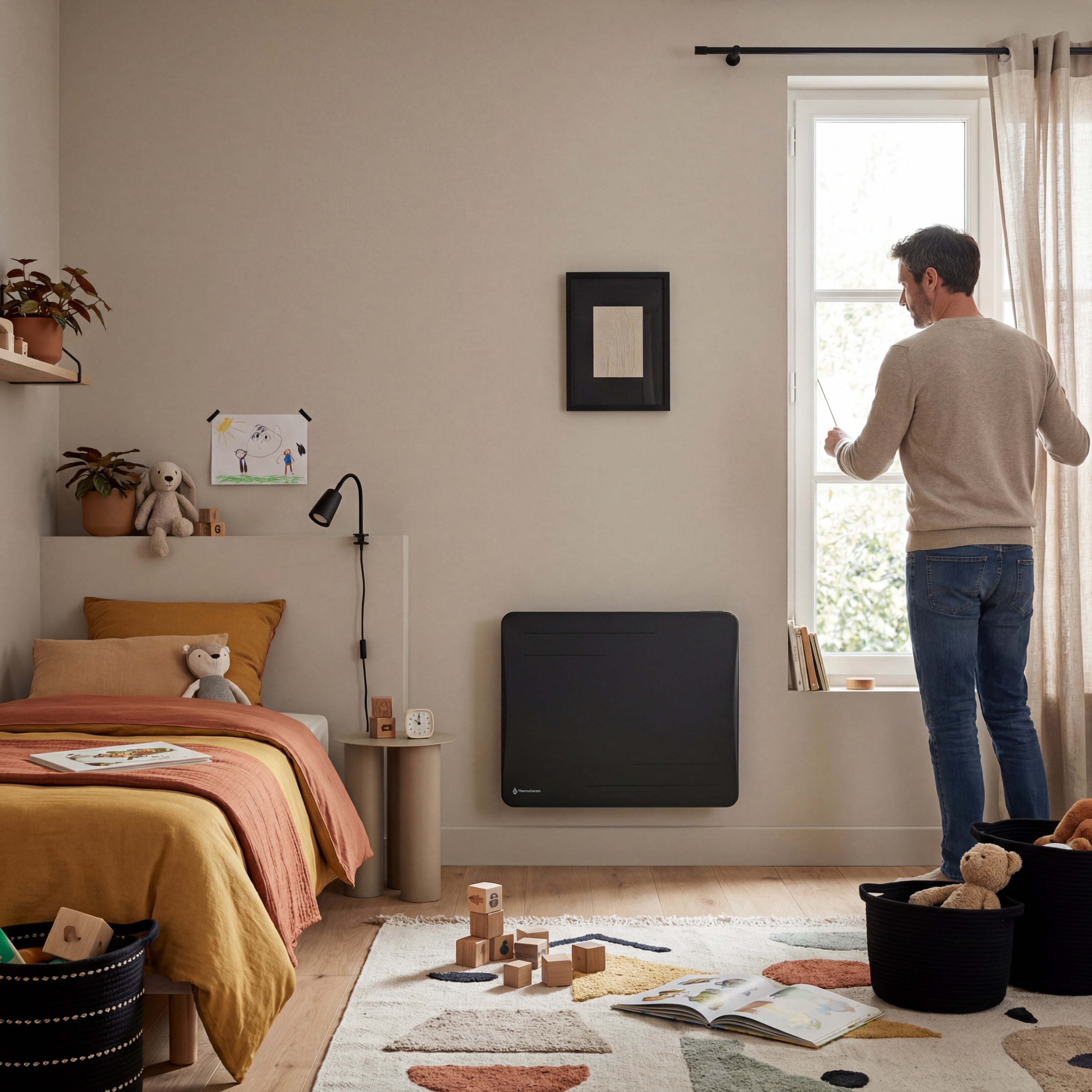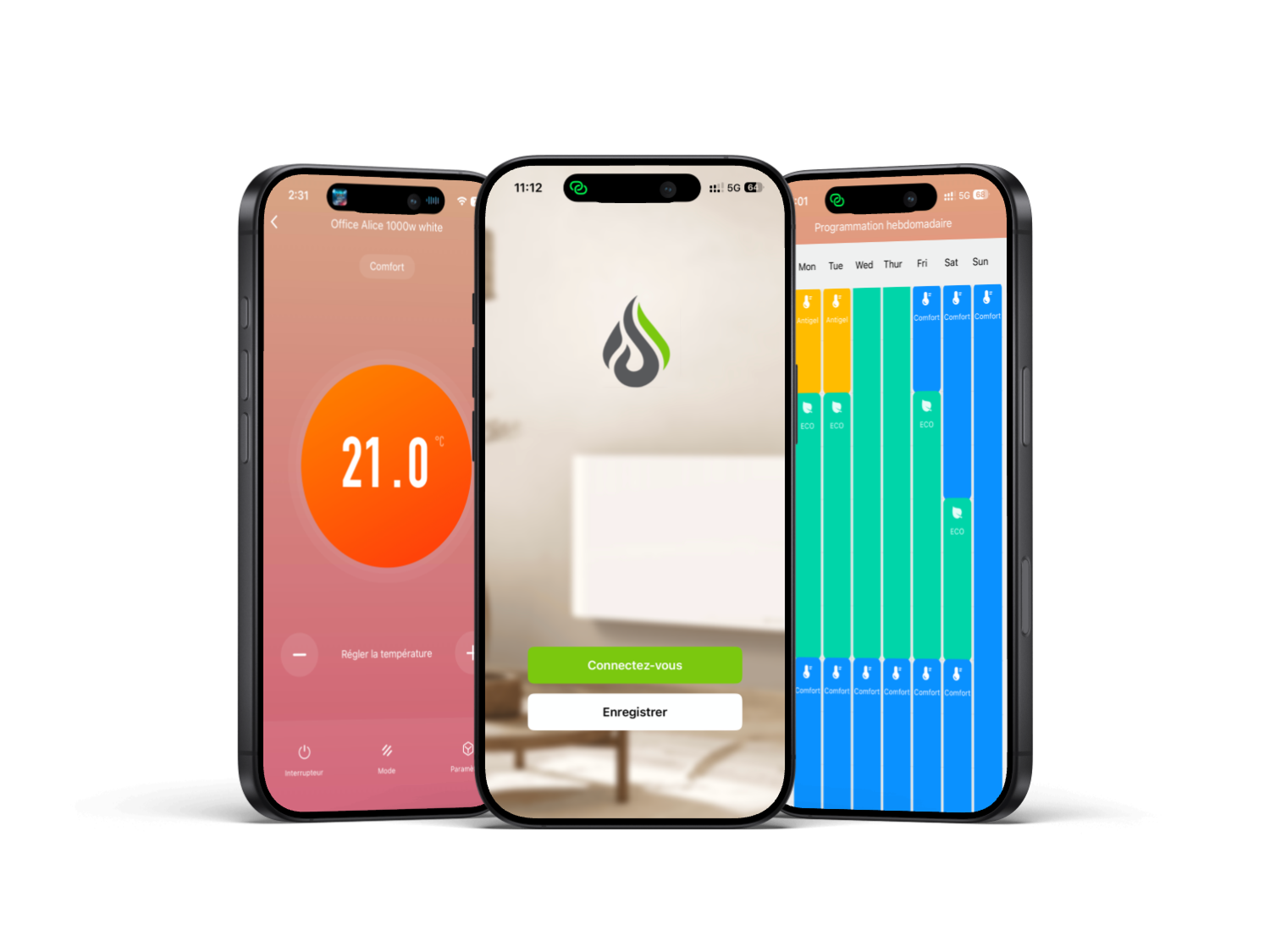 Nos radiateurs se connectent en Wi-Fi et se pilotent facilement depuis votre smartphone grâce à l’application Thermoceram. Où que vous soyez, vous pouvez ajuster la température de chaque pièce et programmer les horaires de chauffe. Un confort intelligent, toujours à portée de main.