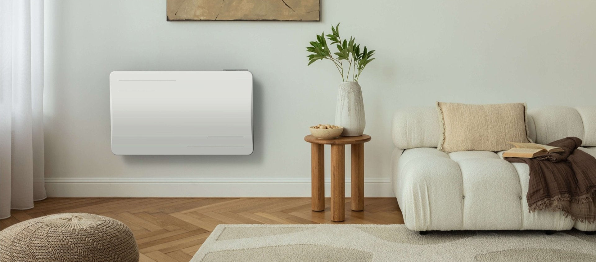 Radiateur électrique connecté 1000W double système de chauffe horizontal Blanc Molia